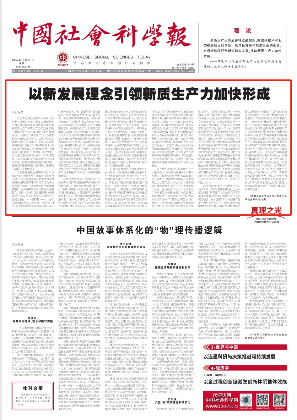 习近平总书记在中共中央政治局第十一次集体学习时强调,“发展新质生产力是推动高质量发展的内在要求和重要着力点”,“新质生产力已经在实践中形成并展示出对高质量发展的强劲推动力、支撑力”。新质生产力作为要素构成全新质态的生产力,体现了经济发展中旧质生产力的跃迁,是经济高质量发展对生产力迭代升级的最新要求。而立足新发展阶段,“坚持创新发展、协调发展、绿色发展、开放发展、共享发展,是关系我国发展全局的一场深刻变革”。以新发展理念引领新质生产力加快形成,对推动我国经济高质量发展、抢占国际竞争制高点、赢得现代化建设主动权具有重要意义。